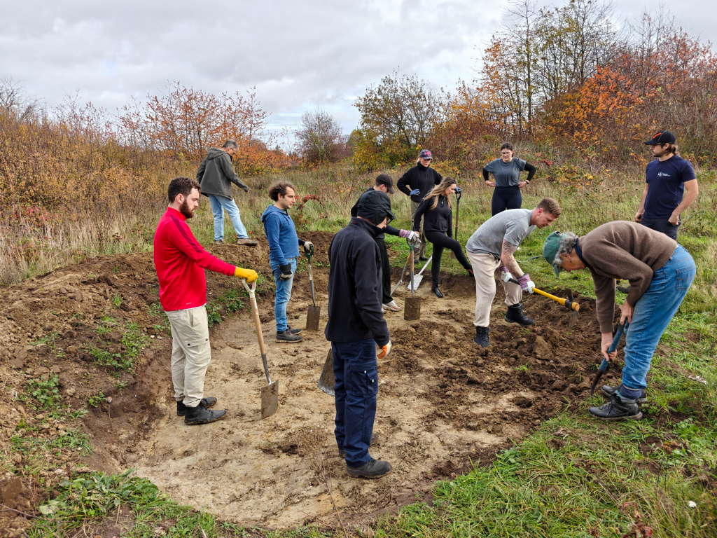 In the afternoon the team moved over to support scrub clearance efforts. Brambles have overtaken large sections of the site, with only limited support for biodiversity. Whilst large sections have been cleared from the surface with machinery, the painstaking manual removal of root systems to reduce regrowth is reliant on the incredible (and physically demanding!) manual efforts from volunteers.